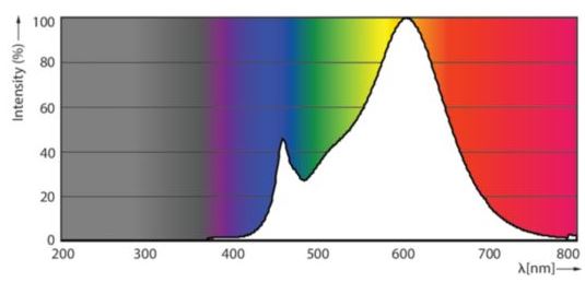 Além disso, o componente infra vermelho gerado pela luz do LED é praticamente inexistente (figura 2 abaixo).